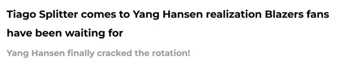 开拓者队记Kunz撰文点评了杨瀚森的现状,具体如下——